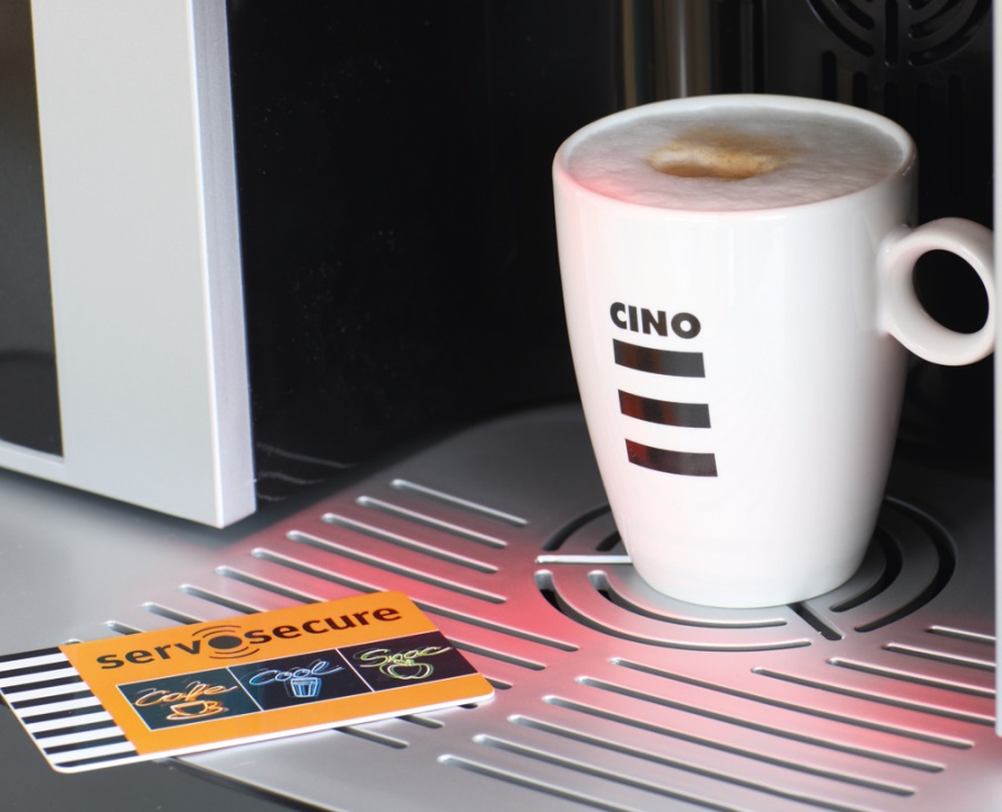 Card an den Hot-Spot halten, Kaffee-Taste drücken, der Rest erfolgt vollautomatisch.